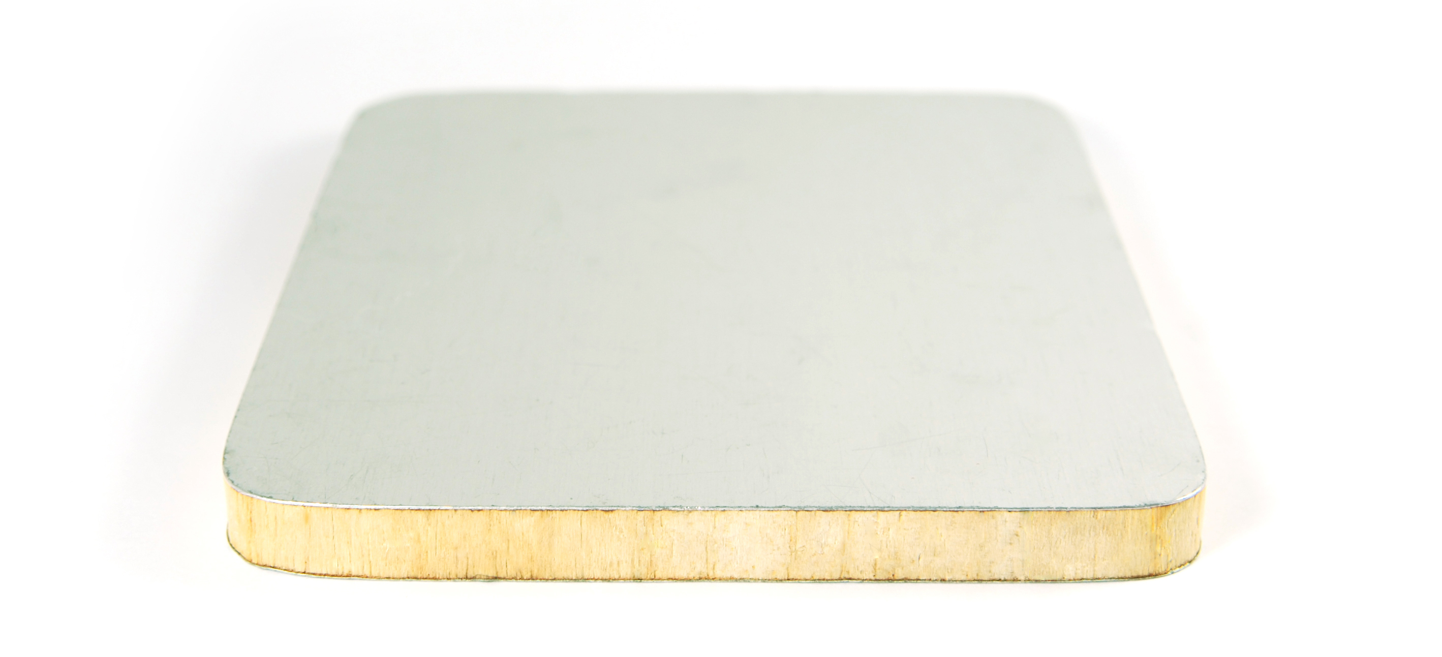 Fred’s Trivet is made of airplane aluminum and balsa wood bonded together to create a “sandwich panel.” The resulting aluminum balsa core is lightweight and durable, thus used extensively throughout the airplane industry, then and now. It resists high heat, corrosion, and daily wear and tear.